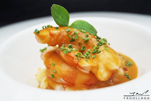 Langostinos asados con su crema